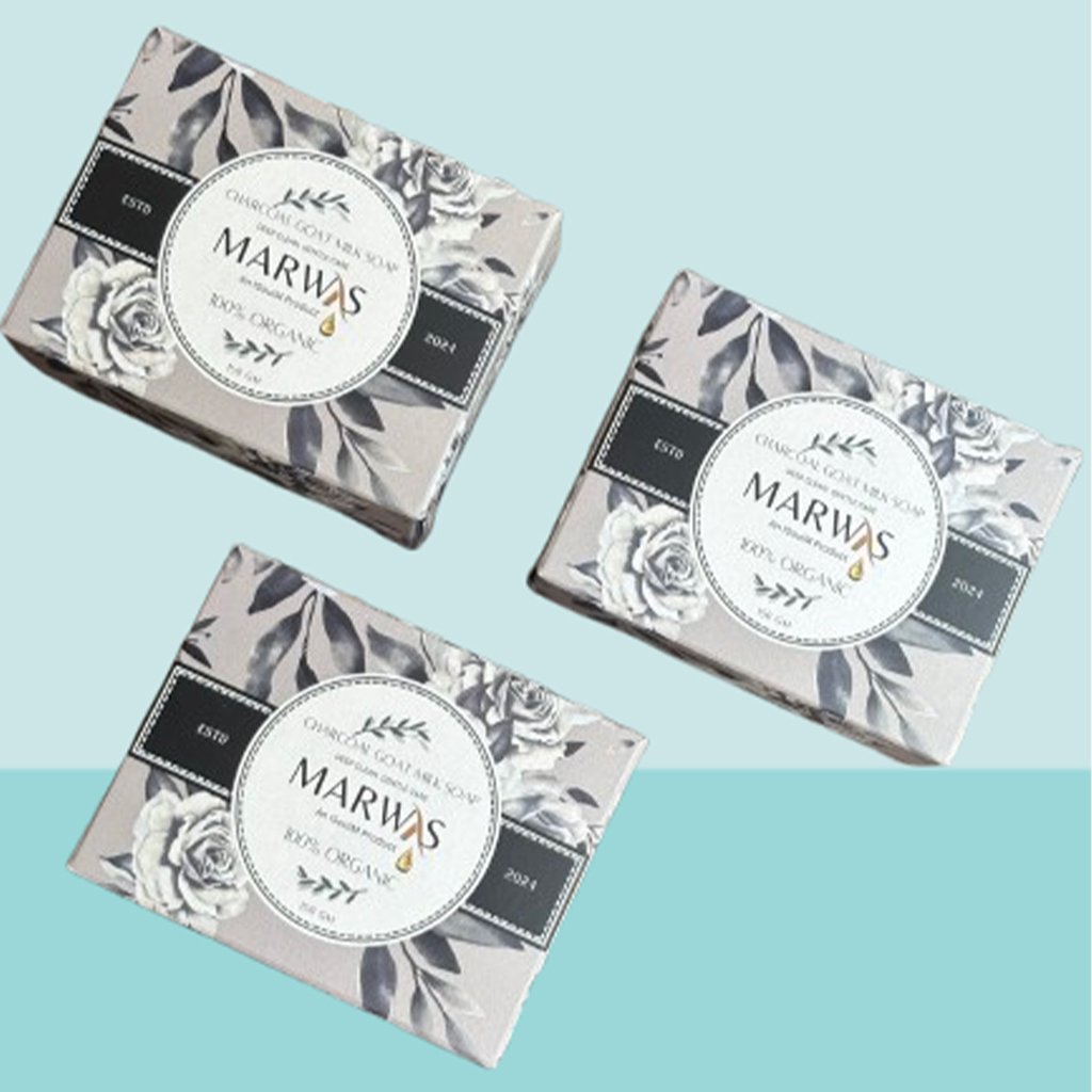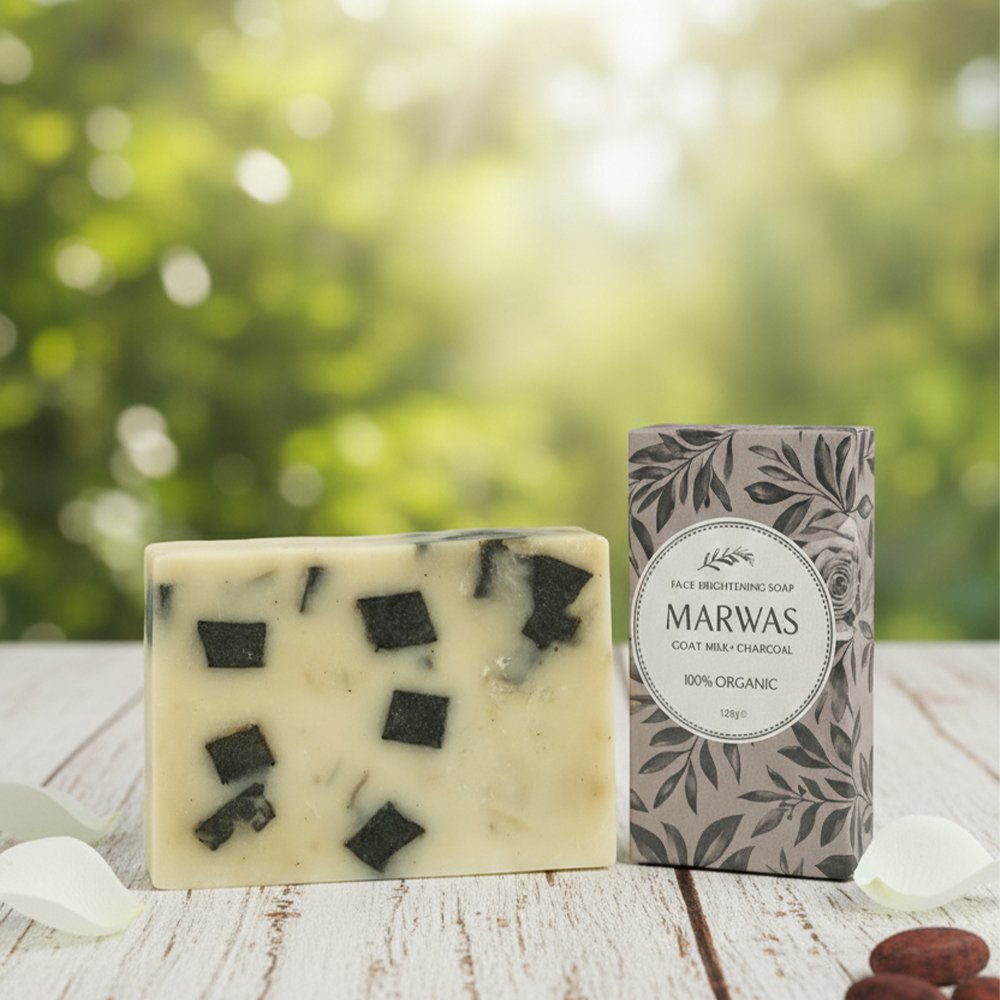 Marwas Charcoal Goat Milk Soap is a refreshing blend of deep-cleansing activated charcoal and nourishing goat milk, crafted to give your skin a pure, healthy glow. The charcoal draws out dirt, excess oil, and impurities from deep within the pores, while the creamy goat milk hydrates, soothes, and restores softness. Gentle enough for daily use, this handcrafted soap helps reduce acne, blackheads, and dullness, leaving your skin feeling clean, smooth, and naturally radiant. Perfect for all skin types, especially oily and sensitive skin.